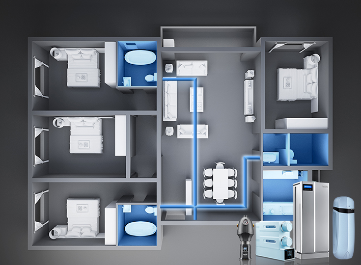 自來水輸水管網(wǎng)的老化導(dǎo)致發(fā)黃發(fā)黑,滋生大量的細(xì)菌、重金屬、泥沙等有害物質(zhì) 突發(fā)性水污染事件等一系列污染導(dǎo)致我們使用的水不再是健康安全的水,而我們主要的用水是家庭用水,飲用水占2%,淘米、做飯煲湯、洗蔬果等廚房用水占25%,其余73%為洗漱沐浴等用水,一杯受到污染的水即使燒開后還是一杯污染的水,因此,愛瑪特建議全屋用水需要進(jìn)行深度凈化。